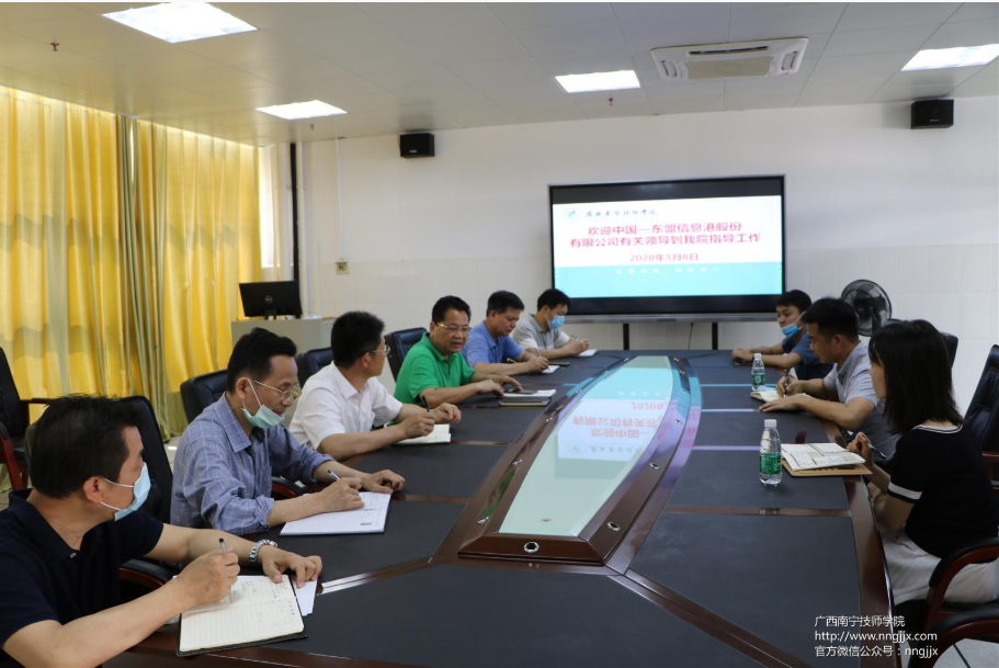 为加强我校产教融合、校企合作,提高人才培养质量,为南宁高质量发展培养更多的高素质技能人才,4月23日上午,我院党委副书记、院长苏华清等一行到位于南宁五象新区的中国—东盟信息港股份有限公司总部,与该公司相关事业部领导进行洽谈校企合作事宜。